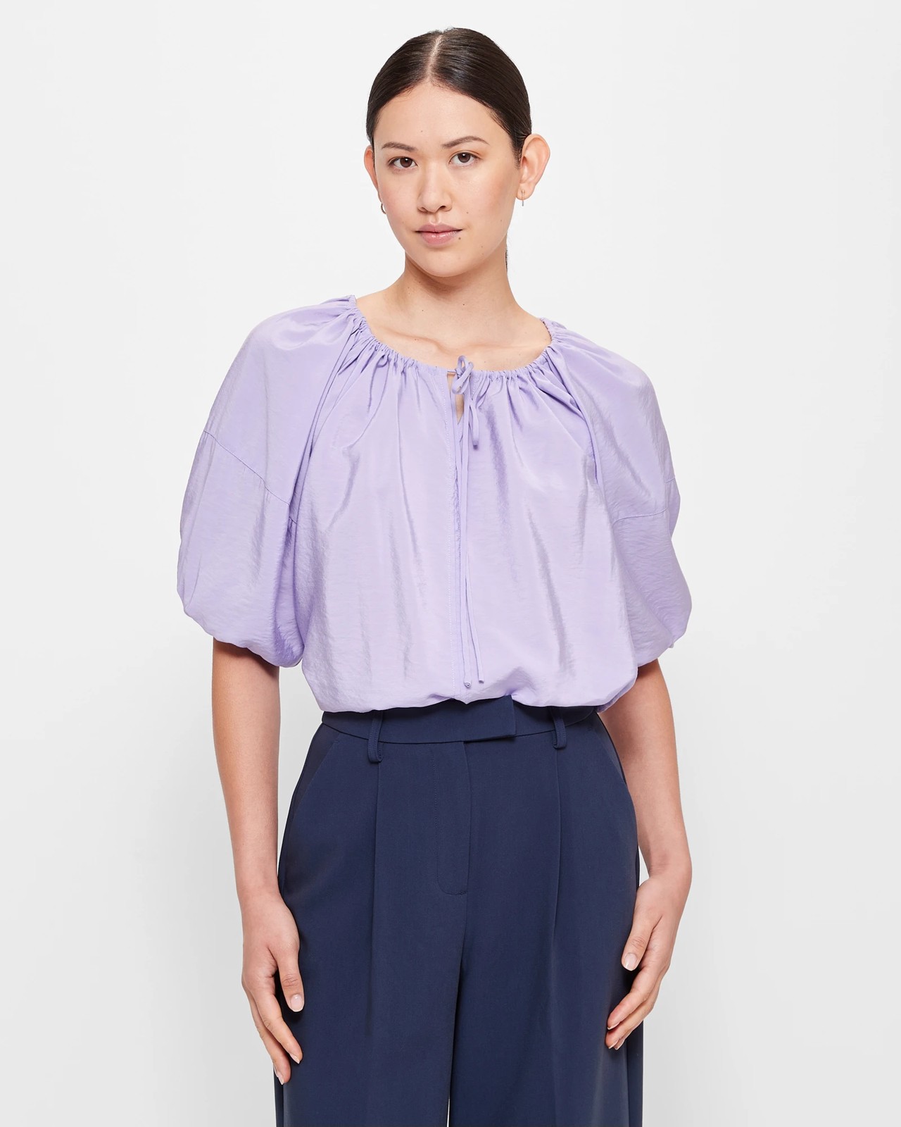 Introducing the V-Neck Puff Sleeve Blouse from Preview. Experience the ultimate comfort with this blouse, made from a luxurious viscose/nylon blend that feels soft to the touch. Its regular fit flatters all body types, while the striking colours add a touch of elegance. The round tie front neckline with v-front drop adds a stylish detail. The short elastic cuff sleeves provide a relaxed and trendy look and the straight hemline offers a polished finish. Whether you're going for a casual outing or a formal event, this blouse will never disappoint. Get yours today and elevate your wardrobe to new heights.