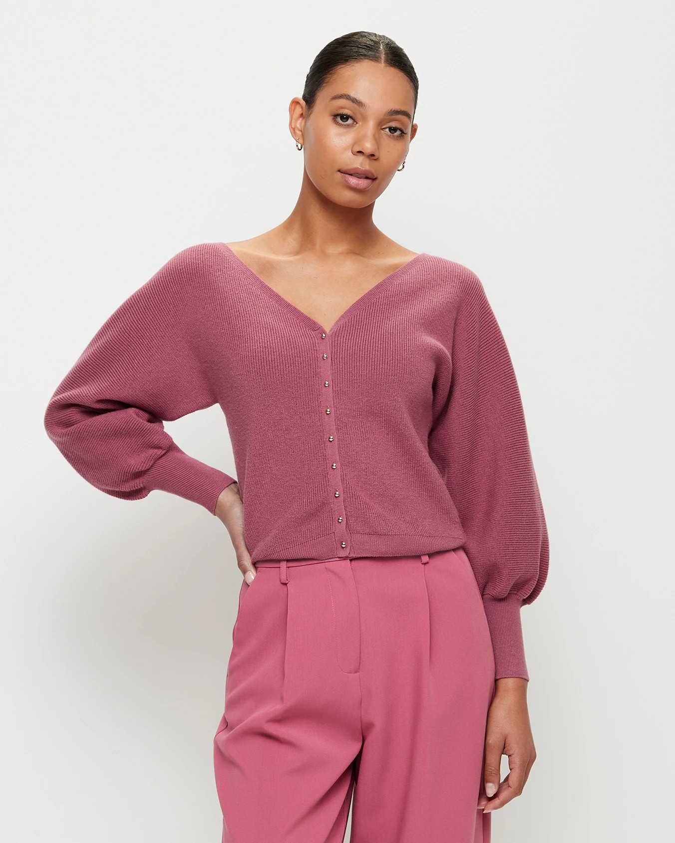 Soft to the touch with a v-neckline and ribbed knit fabrication, as well as being comfortable on the skin, the Preview puff sleeve v-neck cardigan will be one you want in every fashionable colour (sold separately). It has on-trend puff sleeves and cute gold buttons - a great layering piece for all wardrobes.