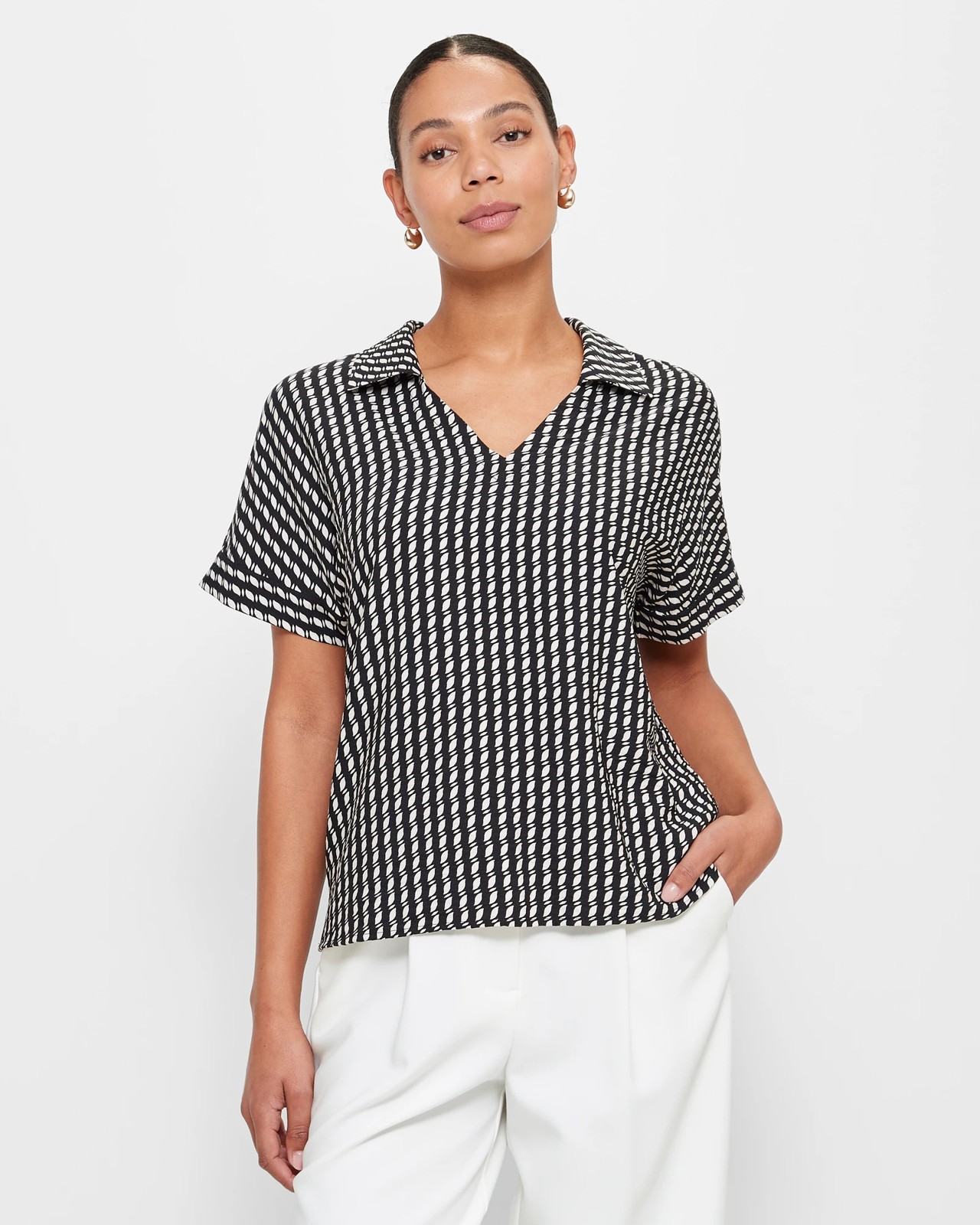 Introducing our stunning V-Neck Relaxed Blouse from Preview. This blouse is made from a luxurious blend of viscose and nylon, ensuring that it feels as good as it looks. With its relaxed fit and Leif geo print, it will add a touch of elegance to any outfit. The round collared neckline and V-front drop create a sophisticated and feminine look. The short cuffed sleeves and straight hemline provide a modern and stylish twist. Complete with side seam splits for added comfort and movement. Get ready to turn heads wherever you go with this must-have blouse. Shop now and elevate your wardrobe!