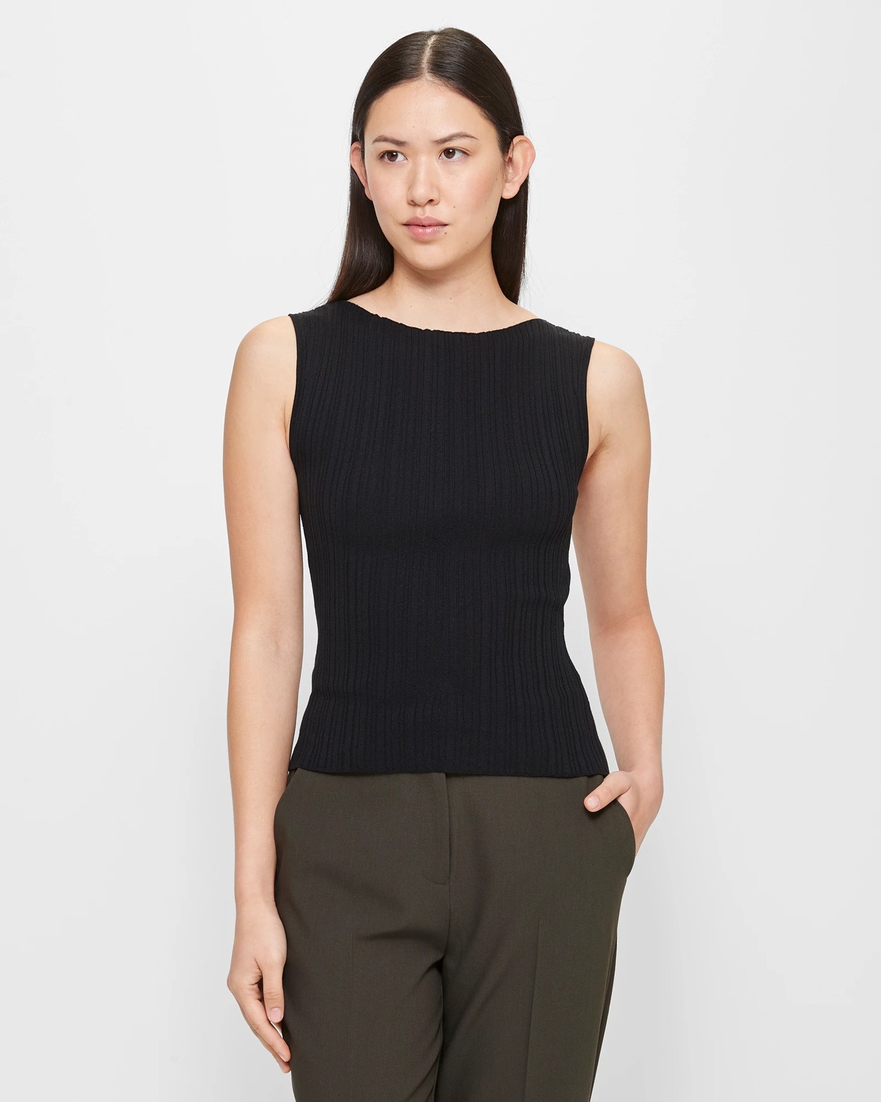 Experience elegance and comfort in our Variegated Boat Neck Tank Top. Crafted from a luxurious blend of viscose and nylon, with LENZING™ ECOVERO™ branded viscose fibes, our top offers a sleek, slim fit, accentuating your silhouette. The distinctive variegated rib design adds a touch of uniqueness, while the boat neckline and ribbed arm holes provide a flattering look. Perfect for any occasion, pair with your favourite bottoms for a chic ensemble!