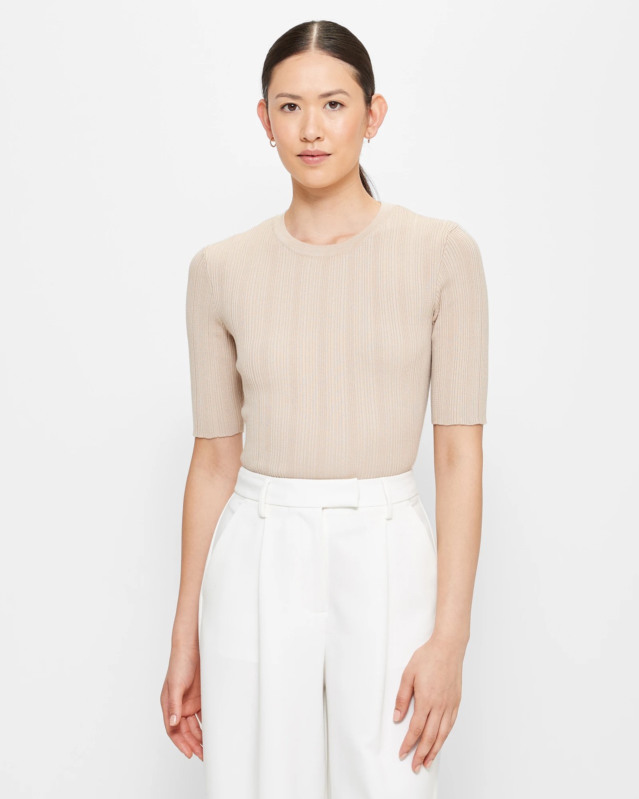 Introducing our Variegated Crew Neck T-Shirt - a must-have for your wardrobe! This tee is made from a high-quality blend of viscose and nylon, ensuring durability and comfort. The all-over ribbed design adds a touch of sophistication to your casual look. The T-Shirt comes in a regular fit, with a crew neckline, short sleeves, and a straight hemline. Available in a stylish bone colour, it effortlessly pairs with any outfit. Designed with Lenzing EcoVero branded viscose fibres, this eco-friendly tee is both trendy and sustainable. Don't miss out - add this versatile and stylish T-Shirt to your collection today!