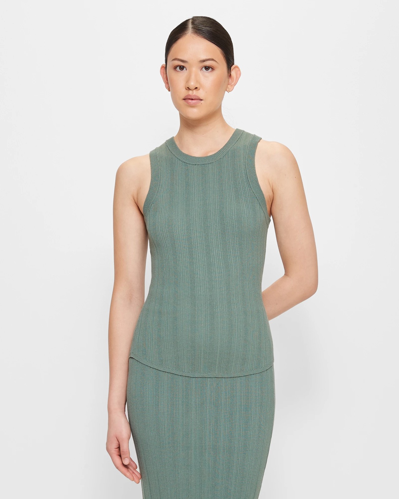 Introducing our Variegated Knit Tank Top by Preview! This tank top is made from a luxurious blend of viscose and nylon, ensuring a soft and comfortable fit. The fabric contains EcoVero™ branded viscose fibres, making it a sustainable choice. With its all over ribbed knit design, this tank top adds a touch of texture to your outfit. The flattering fit makes it a versatile piece that can be dressed up or down. The crew neckline, sleeveless cut and thick shoulder straps provide a flattering and stylish look. Complete with a curved hemline, this tank top is a must-have for every wardrobe. Don't miss out, order yours today and elevate your summer style!