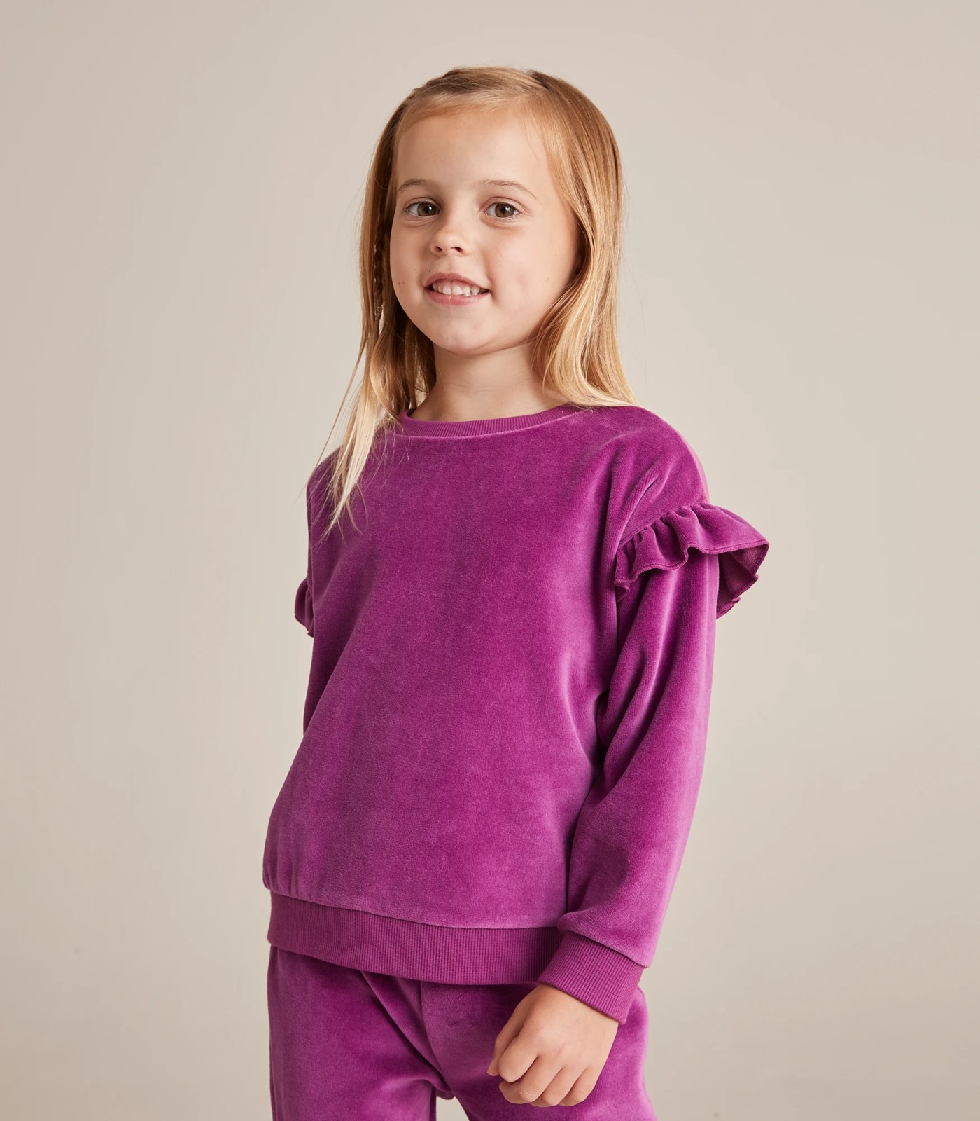 Super soft to touch and comfortable to wear comes the Velour Jumper, featuring a ribbed crew neck and long sleeves with frill shoulder.