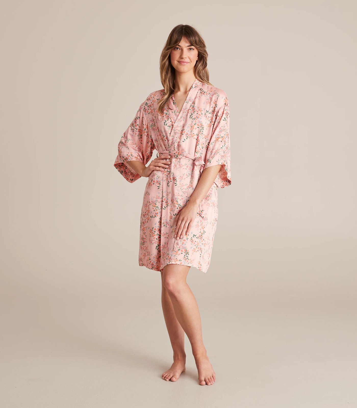 The perfect cover up for getting cosy in the warmer weather, the viscose dressing gown has an open front for easy pull on, a removable waist tie belt to cover up and an inner tie up for added support.