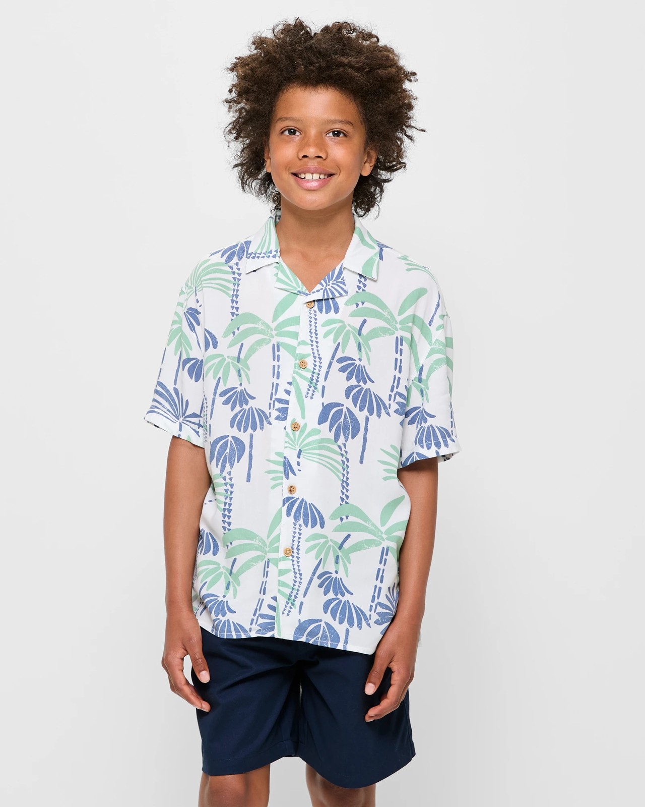 Transform your young one's wardrobe with this chic viscose shirt designed for boys. Showcasing a captivating all-over print, it offers a regular fit complemented by a neat collar and button-down front. The short sleeves and curved hem provide a modern appeal, making it ideal for both casual occasions and family adventures. Make a fashion statement and add this adaptable piece to their collection for an effortlessly stylish look.