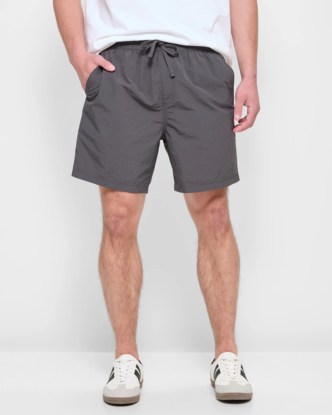 Experience the perfect blend of style and comfort with Commons Volley Shorts. Made from quality nylon, these shorts showcase an all-over textured design and a regular fit. The thick elastic waistband and drawstring ensure a secure fit, while the side pockets with mesh lining add practicality. Featuring a mock fly front and short length, they are ideal for everyday activities or a fun day by the water. Upgrade your casual wardrobe with these must-have shorts.