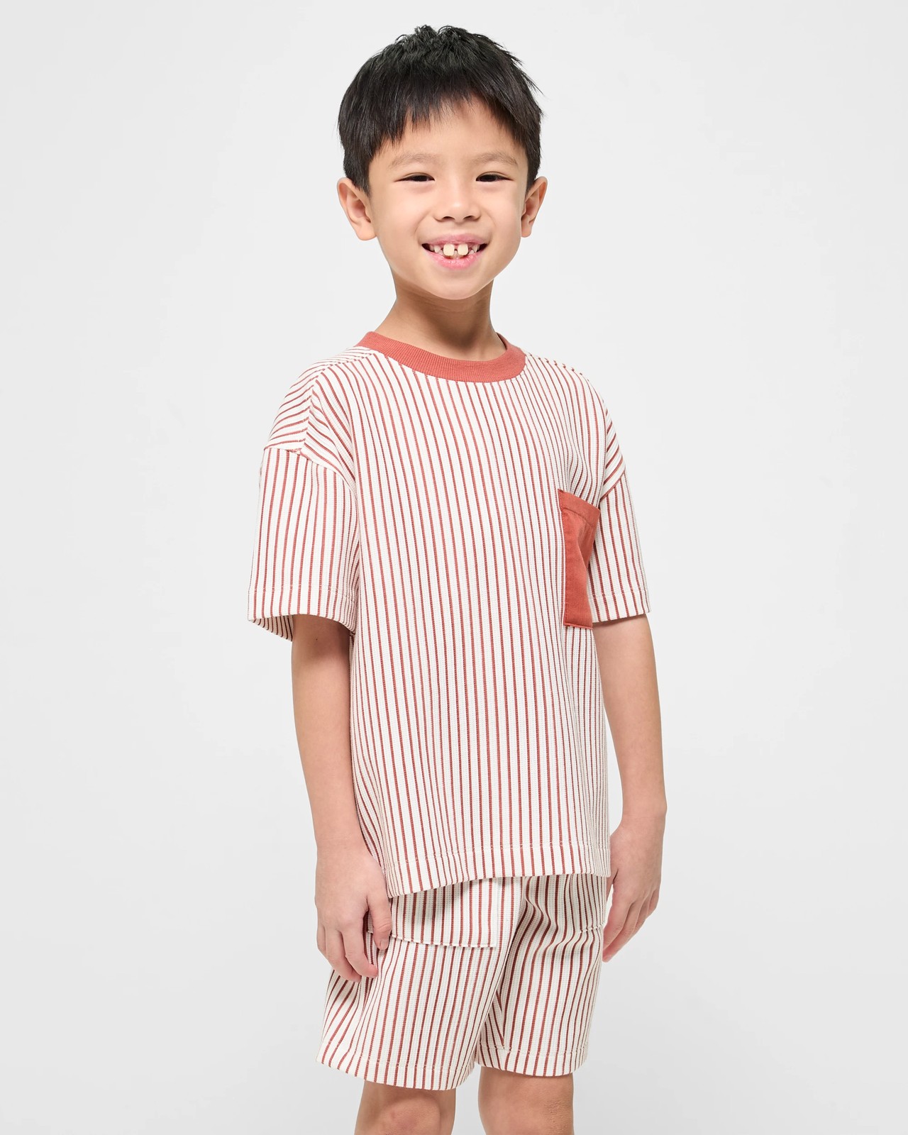 Upgrade your child’s everyday style with this cosy two-piece set, designed for comfort and fun. The soft waffle texture adds a special feel to the classic short-sleeved T-shirt, which features a practical chest pocket for all their little treasures. Teamed with matching shorts that offer a gentle, adjustable waistband, this set makes getting dressed a breeze. Ideal for busy mornings and active afternoons, your child will love how easy it is to move and play in this outfit. Add a touch of charm to their wardrobe and make every outing more enjoyable.
