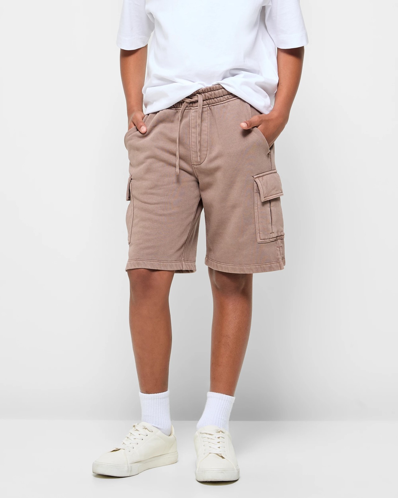 Enjoy effortless comfort and style with these washed fleece shorts, designed for boys who love to move. Made from a soft cotton blend, they provide a relaxed fit with a gentle fleece lining, ensuring warmth and cosiness whether he's at play or taking it easy. The elastic waistband with a drawcord means a flexible, secure fit, while side and cargo pockets offer space to keep essentials close. A touch of flair is added with subtle side splits, making these shorts the perfect companion for everyday fun. Discover the difference these shorts can make and give your youngster their new favourite pair today.