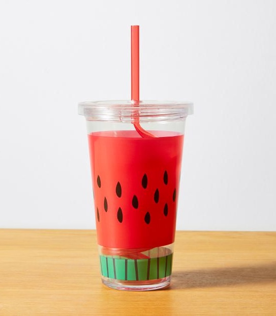 Enjoy your favourite refreshment with our watermelon curly straw. Featuring a vibrant fun print with a novelty curly straw, you will be able to keep refreshed in style.