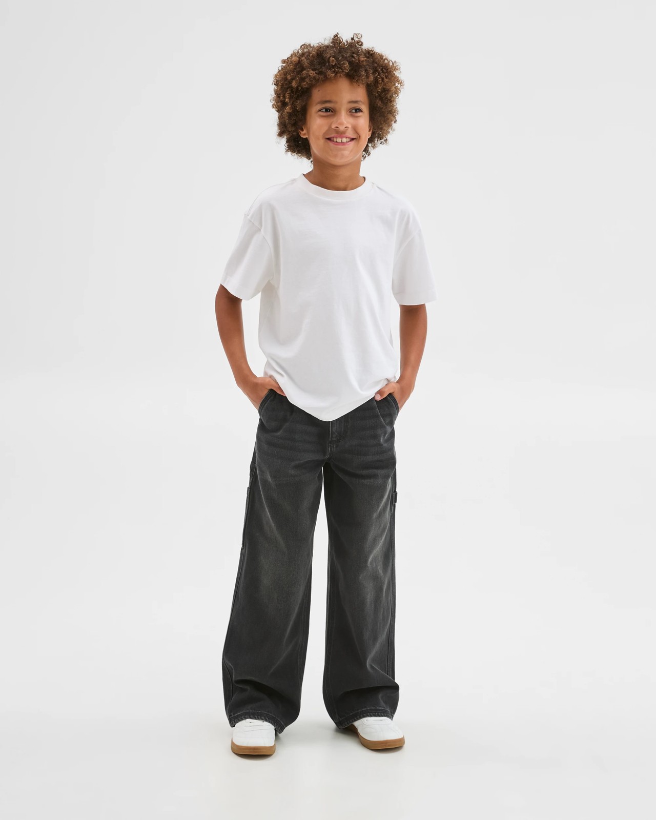 Refresh your child’s look with these Wide Leg Carpenter Denim Jeans, made for comfort and easy-going style. With a generous wide leg, these jeans allow plenty of freedom for energetic play and adventure. The thoughtful design includes a structured waistband and a secure button closure, making mornings hassle-free. Spacious pockets and a handy hammer loop mean your young one can keep essentials close, whether heading out to explore or just relaxing with friends. The soft, cotton-rich fabric feels gentle against the skin, while the neat double-turned hem gives a tidy finish. Add these jeans to your shopping basket for a piece that blends modern fashion and everyday practicality. Let your youngster step out with confidence and fun – order today!