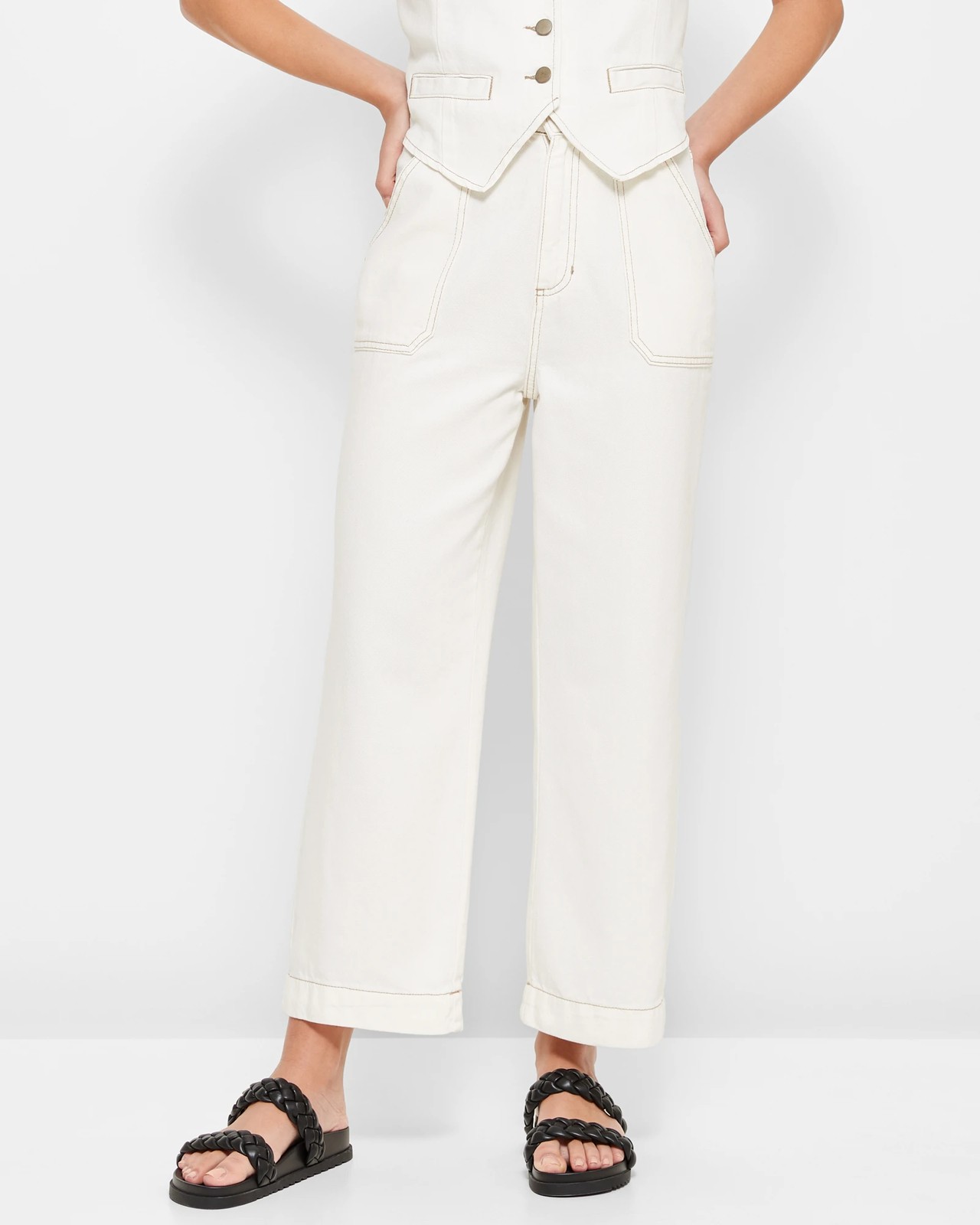 A lightweight jean that is perfect for wear all year round, the wide leg utility denim jeans are made from a lightweight and breathable cotton/lyocell blended material that contains recycled fibres. They have a comfortable wide leg design and have front utility pockets that help hold all of your essentials. The structured waistband adds a sophisticated look and the ankle length has great coverage. A must have for anyone who loves the look and feel of denim.