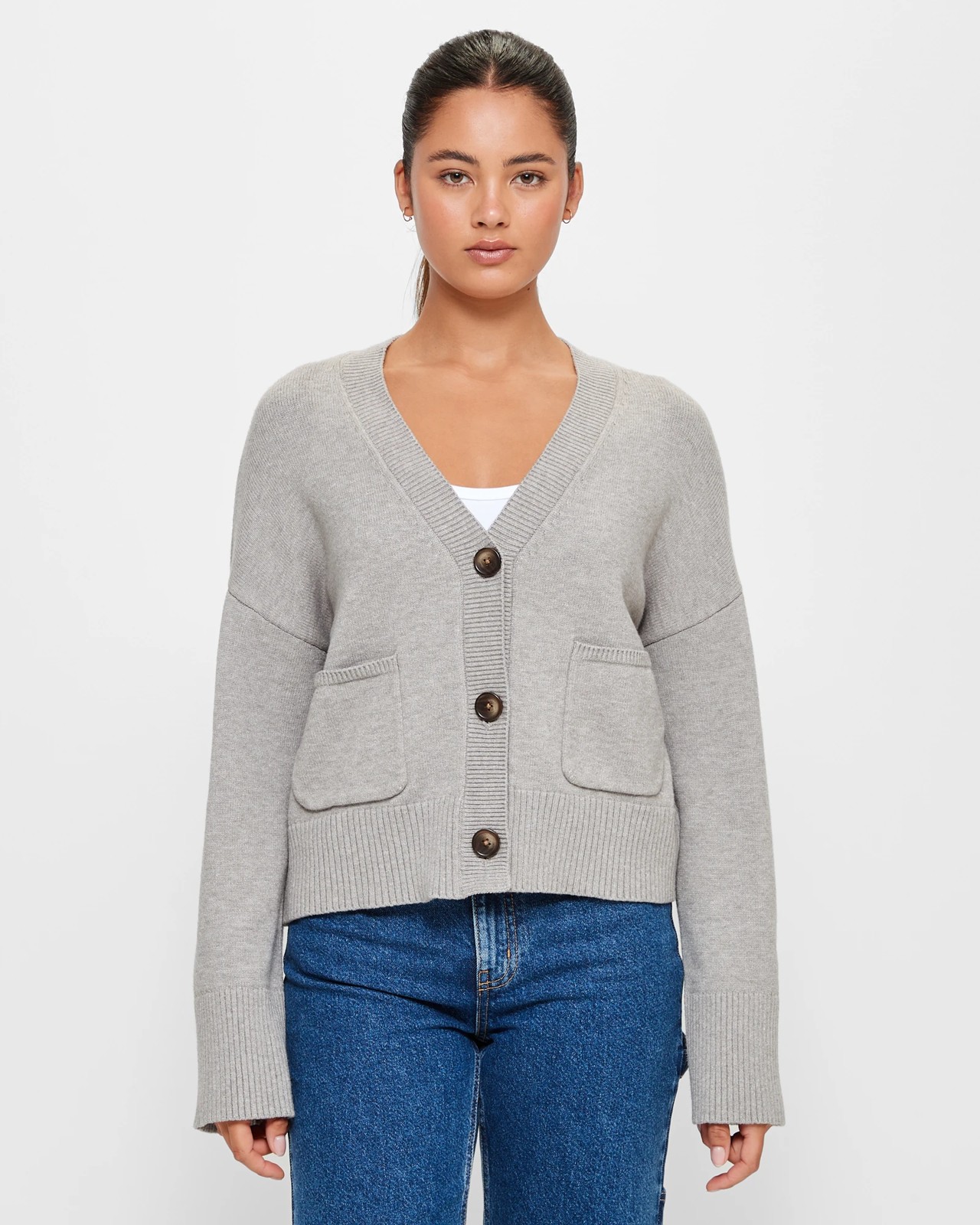 Introducing the Wide Sleeve Knit Cardigan from Lily Loves. Crafted from a soft and luxurious blend of viscose, polyester, and nylon fabric, this cardigan is a perfect addition to your wardrobe. With its all-over knit design and ribbed V-neckline, it combines both style and comfort. The long wide cut sleeves with thick ribbed cuffs add a trendy and distinctive touch. The button-through front and open front pockets provide practicality and ease, while the thick ribbed straight hemline adds structure. This cardigan is designed for a regular fit and has a short length, making it versatile and suitable for any occasion. Grab yours now and experience the utmost warmth and style!