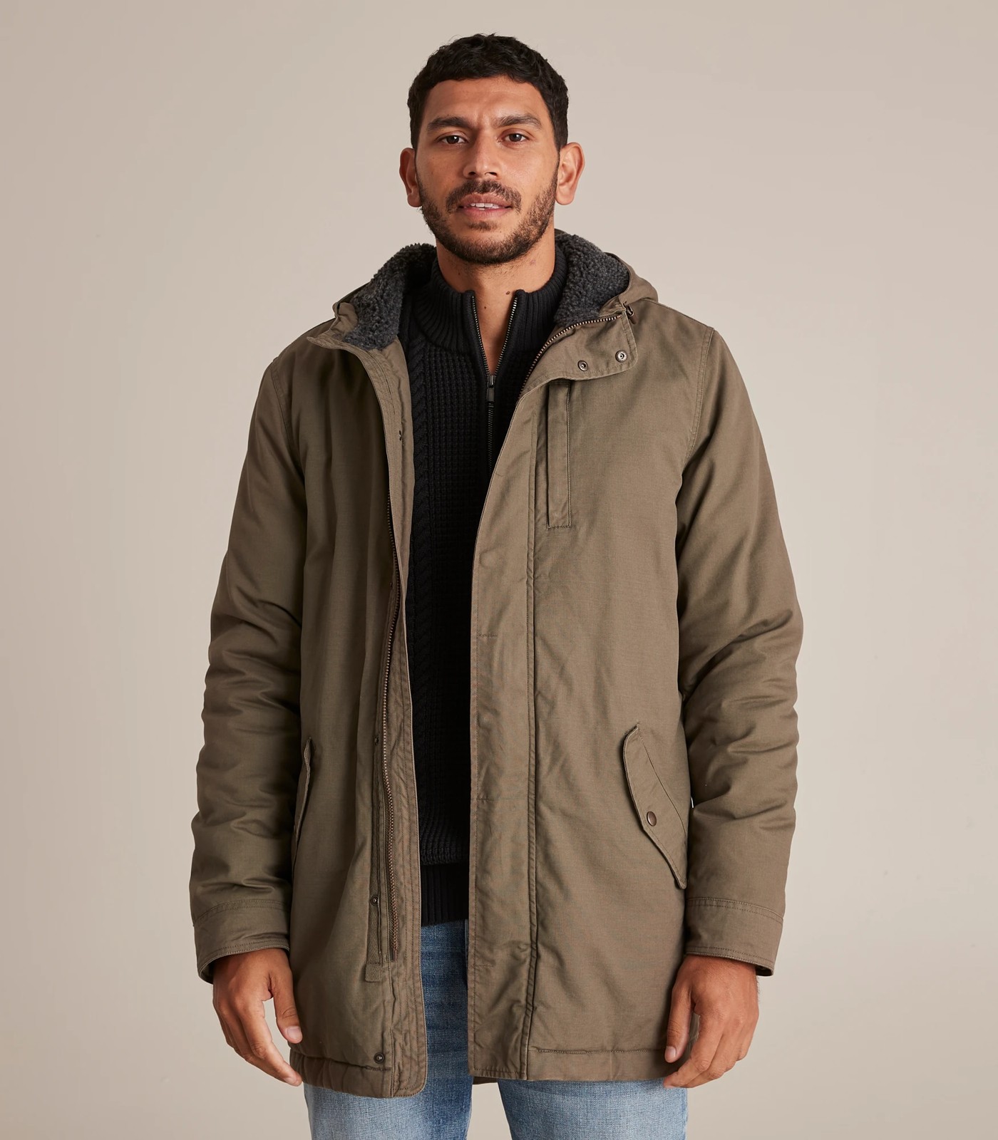 The Winter Parka Jacket comes in an olive green colour and is the perfect choice on cold days. It's constructed with a durable cotton outer and is fully lined; the bottom half of the lining is quilted polyester and the chest up is lined with a fluffy polyester material to keep you extra warm.