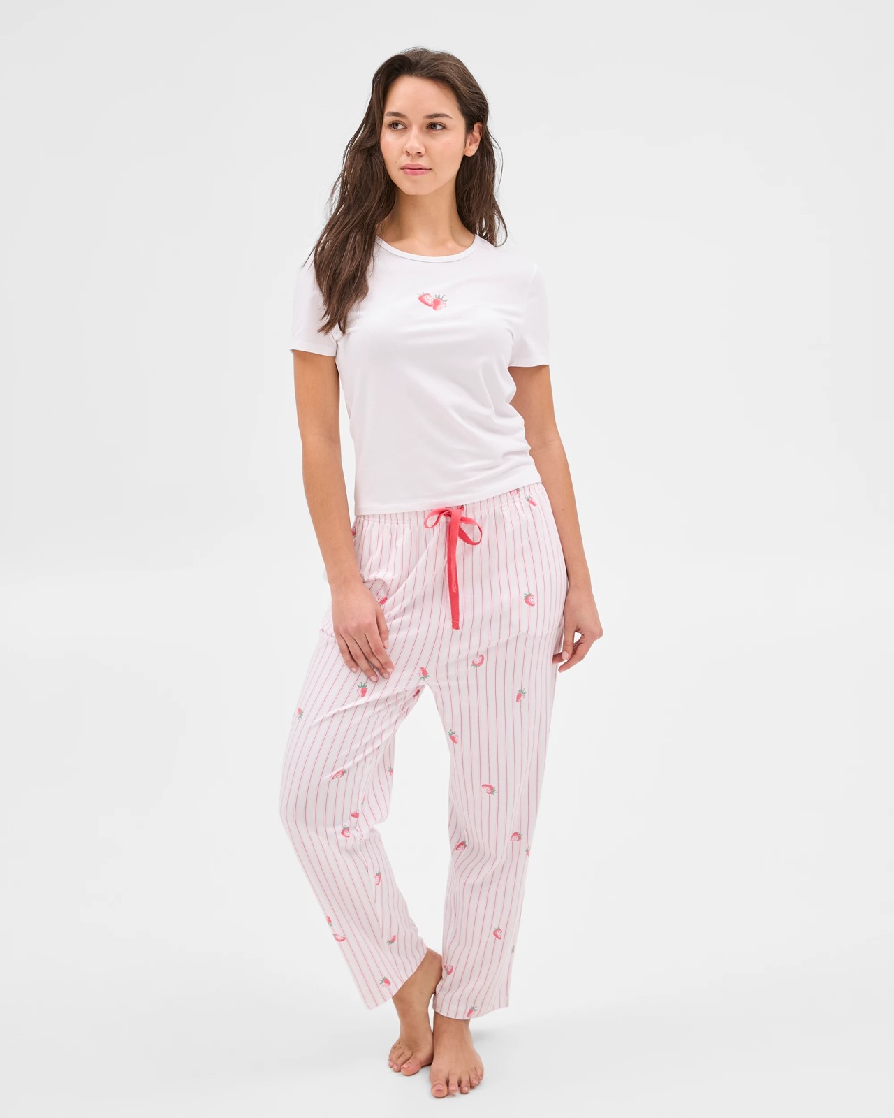 Settle in for a peaceful night's sleep with this women's sleep tee, made from a gentle cotton and polyester mix that offers a soft touch against your skin. Blended with Australian cotton and designed in a regular fit, this tee keeps you feeling light and comfortable all evening long. The crew neckline and short sleeves provide a classic, easygoing look, while the subtle chest print adds a new twist to your bedtime routine. Style it with matching sleep pants and look forward to unwinding in effortless comfort. Give your nightwear collection an upgrade and experience cosiness night after night.