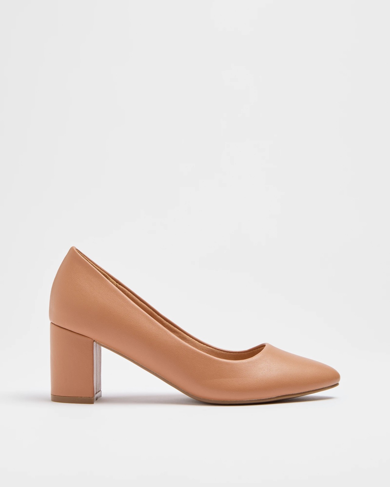 Step out in style with our Marnie Block Heels! These stylish shoes feature a leather look and slip-on design, with an almond toe and a grip sole. The wedge heel is approximately 7cm high, adding a subtle boost to your look. Whether you’re hitting up a barbeque or a night out on the town, you’ll be sure to look your best in these chic heels.