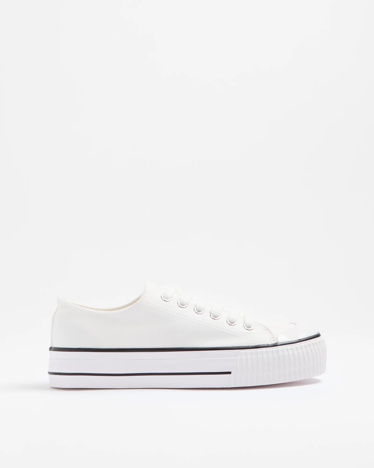 Step into ultimate comfort and casual style with the Genoa II Women's Flatform Sneaker. Featuring a sleek white canvas upper and a closed round toe with a mudguard for hassle-free cleaning, this sneaker is perfect for everyday wear. The six-hole eyelet design with flat laces ensures a secure fit, while the twin-stitched collar adds a touch of charm. Thanks to the padded footbed, your feet will enjoy cushioned support all day long. With a chic 2.5-inch flatform and synthetic sole, you'll not only look good but feel great too. Refresh your casual wardrobe with these sneakers today!