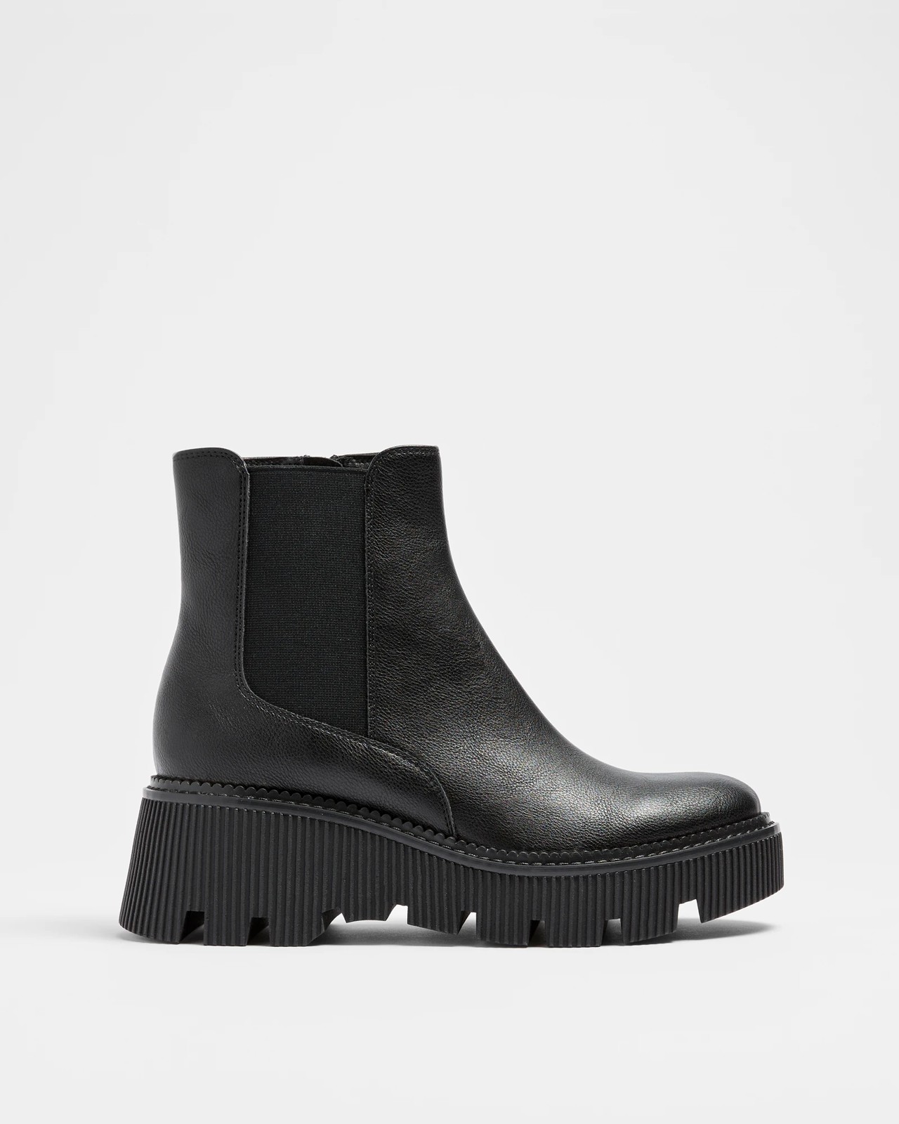 Step into style and comfort with the Womens Chunky Ribbed Sole Pull Up Boot - Benji. Made with a synthetic upper, these black boots offer a sleek closed round toe design and a convenient inner zip for easy wear. The quarter elastic gusset ensures a snug fit, while the padded footbed provides all-day comfort. With a 3cm front platform and a bold 6cm chunky heel, these boots add height without sacrificing stability. The distinctive ribbed sole sidewall completes the look, making these boots a must-have for any wardrobe. Refresh your footwear collection and take on the day with confidence in the Benji boots.