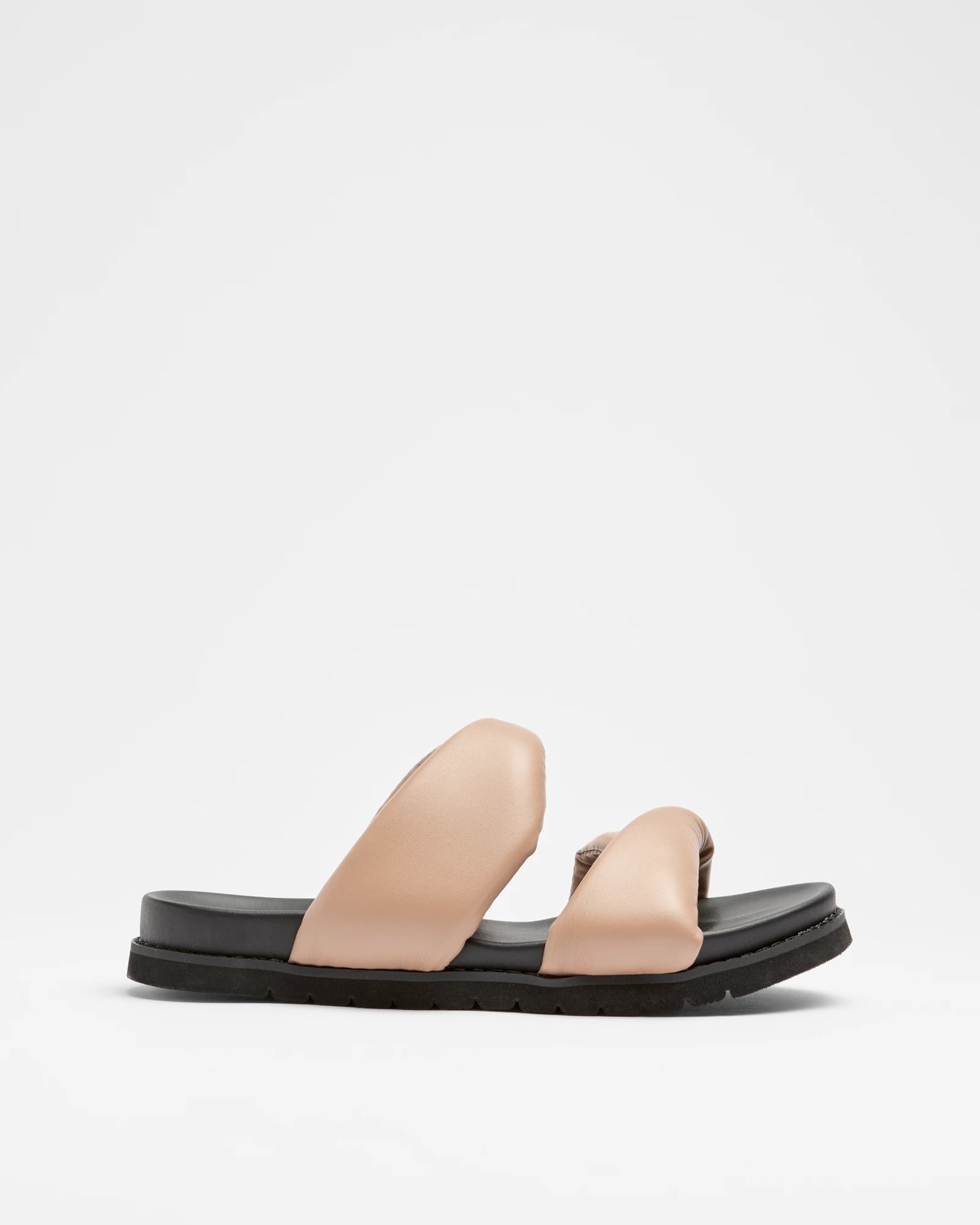 The womens Maia double band slides are comfortable and stylish. Perfect in warm weather, they feature an open toe design with wide twisted double straps across the vamp and lightly cushioned innersole for comfort.