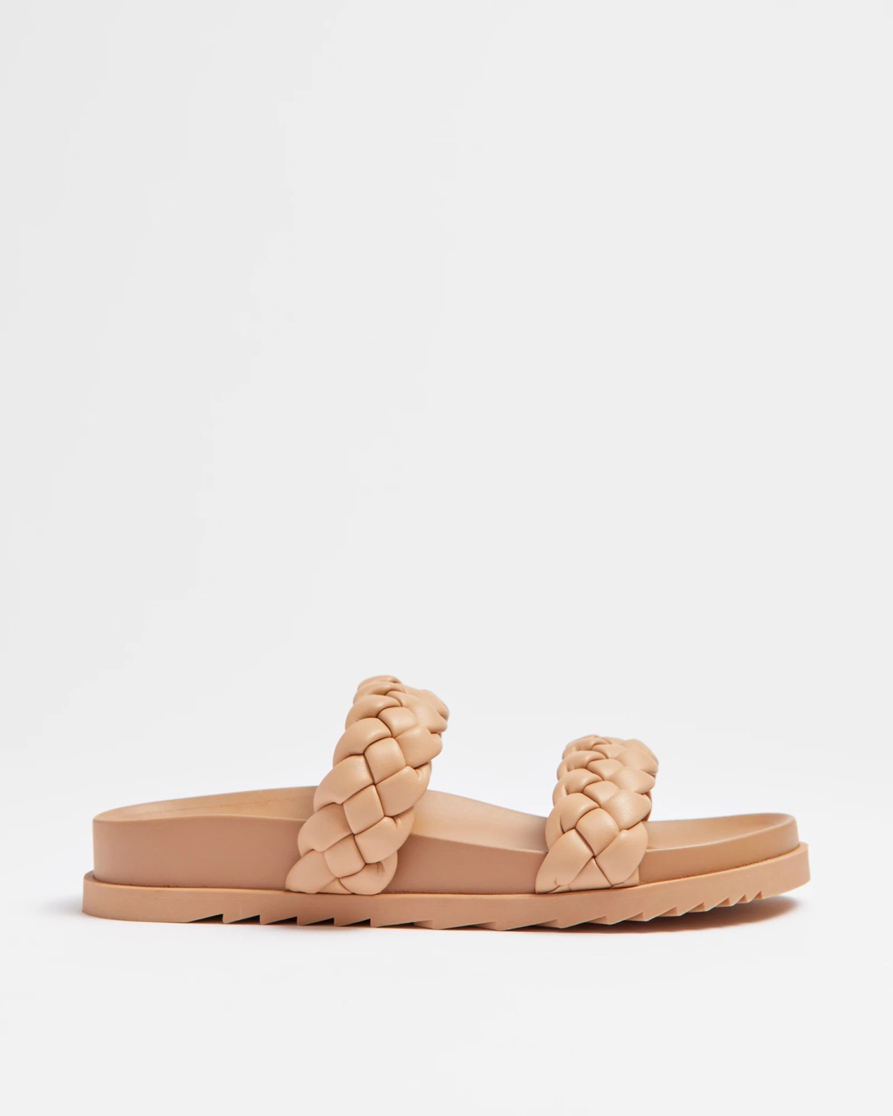 Look stylish and feel comfortable with the Womens Double Braided Slide - Andria! Crafted from a synthetic upper, this slide features a regular slide-on fit, open toe, and twin braided leather look vamp straps. The moulded footbed and flexible non-slip cleated sole provide superior comfort for all day wear. Whether dressing up for an occasion or wearing casually around town, the Womens Double Braided Slide - Andria is sure to become an essential in any wardrobe.