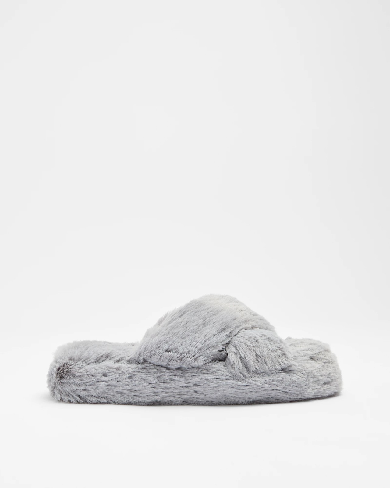 Womens Fluffy Cross Over Slipper - Liddia II - Grey