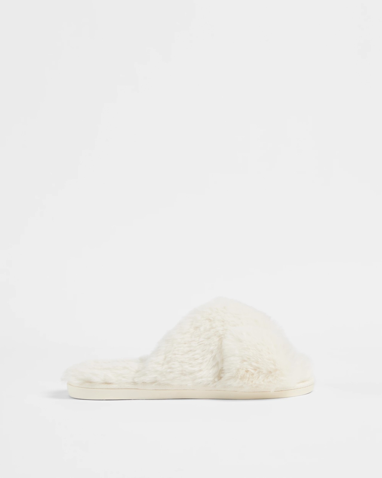 Womens Fluffy Cross Over Slipper - Liddia II - Off White