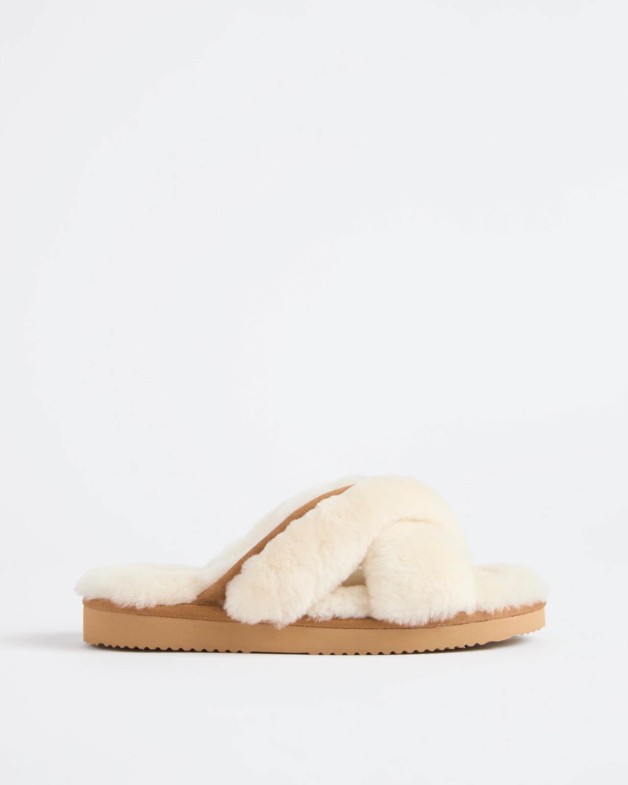 Womens Genuine Suede and Sheepskin Cross Over Slipper Scuff