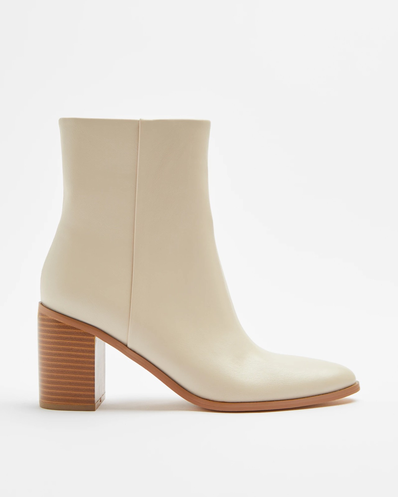 Introducing the Womens Theo Heeled Boot - a must-have addition to your footwear collection. Crafted with a stylish leather-look synthetic upper, these boots bring both comfort and sophistication to any outfit. The closed almond toe adds a touch of elegance, while the internal zip ensures easy on and off. With a 7.5cm stacked veneer block heel, these boots provide the perfect amount of height without sacrificing comfort. Designed with mesh lining and a padded footbed, they provide all-day wearability. Complete with a synthetic sole for durability, these boots are the perfect choice for any occasion.