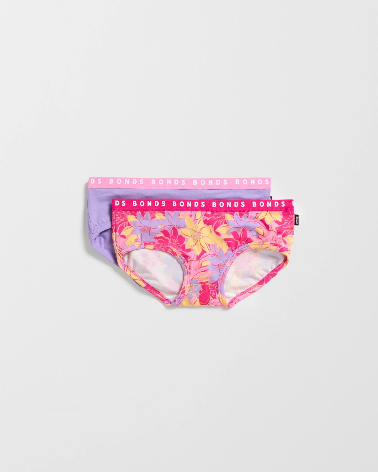 Womens Hipster Boyleg Briefs 2 Pack - Bonds - La La Lilies/ Prince Purple