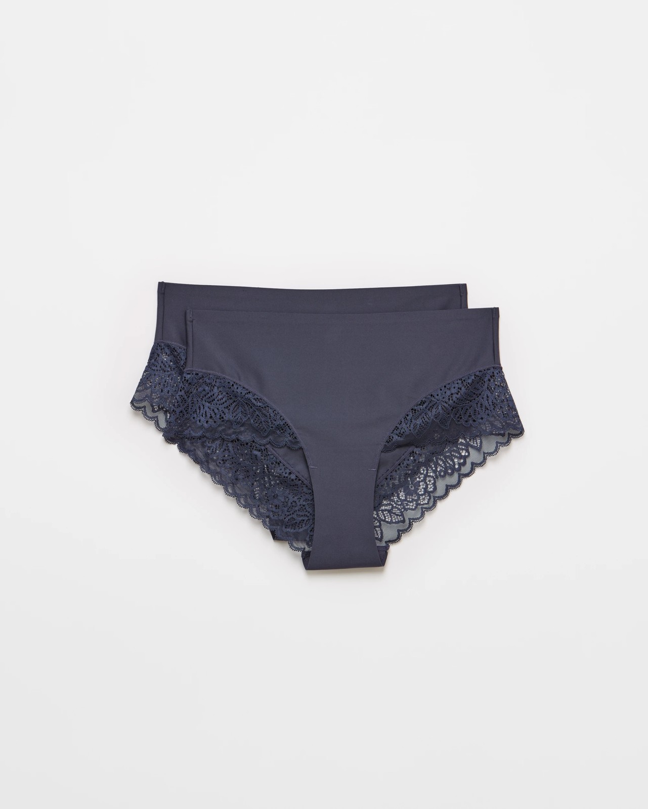 Womens Luna Smooth Touch Lace Bonded Waist Midi Briefs 2 Pack - Winter Blue