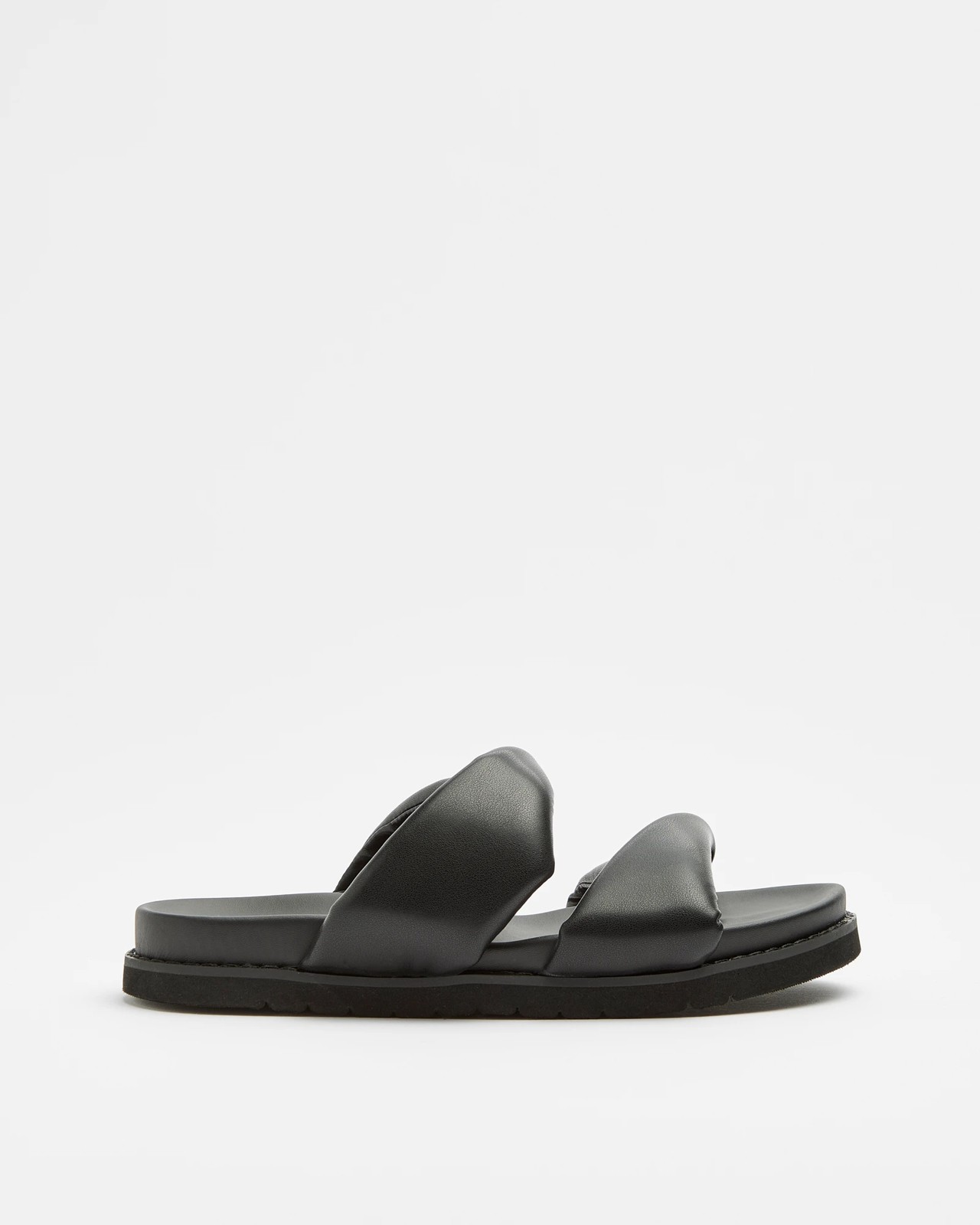 The Womens Maia Double Band Slides are comfortable and stylish. Perfect in warm weather, they feature an open toe design with wide twisted double straps across the vamp and lightly cushioned innersole for comfort.