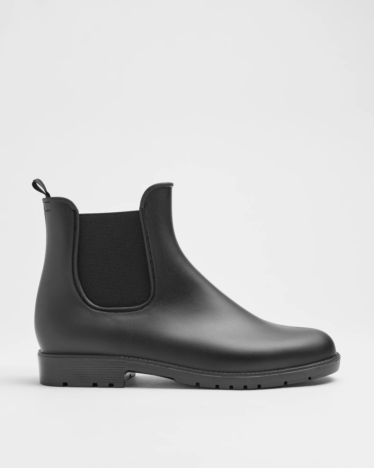 Introducing the Womens Matte Gumboots - Bree, your perfect wet-weather companion. Designed with a sleek matte black finish, these gumboots feature a synthetic upper and a comfortable, padded footbed ideal for all-day wear. The double elastic gusset and back pull tab make them easy to slip on and off. A flexible synthetic sole ensures you can move with ease no matter the conditions. Step into style and comfort; grab your pair today!