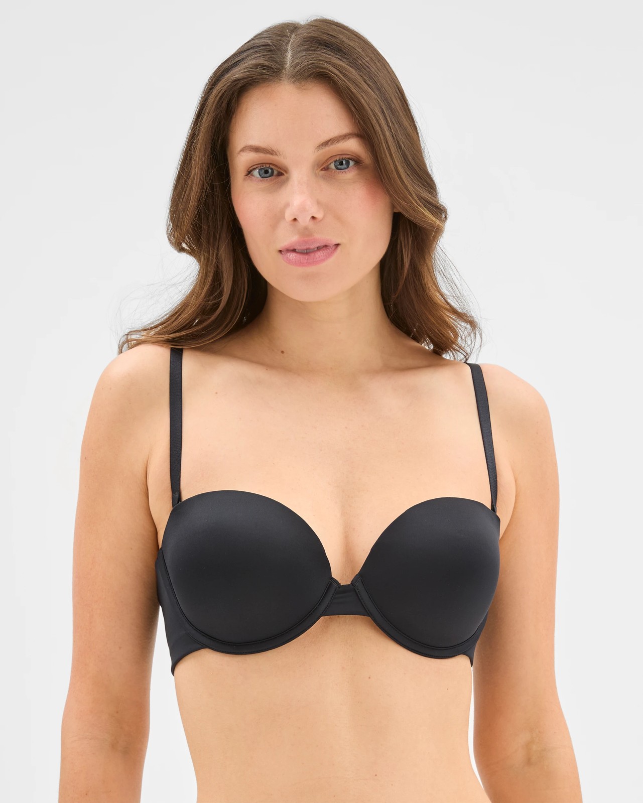 Can be worn strapless, classic, halter, cross-back, single strap, asymetric one-shoulder, v-front and crosso-front