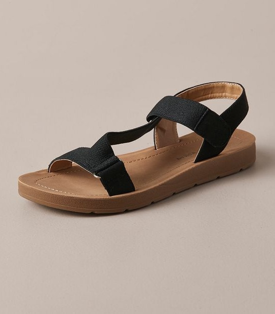 - Single elastic diagonal straps across vamp of foot for great fit