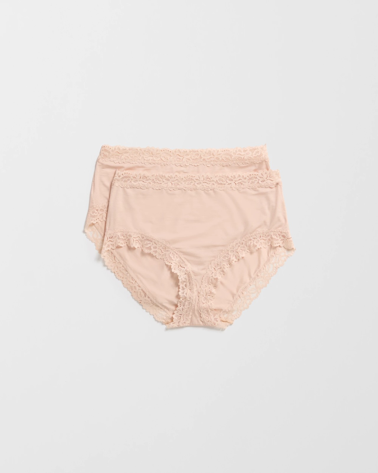 Experience everyday comfort with this two pack of women's modal and lace full briefs. The supersoft fabric has just the right amount of stretch to move with you all day, while the flat lace waistband and delicate lace edging give a feminine touch to your underwear drawer. Sitting at the waist, these briefs offer support and all over coverage, making them a great choice for daily wear. You’ll love how gentle they feel against your skin and how easy they are to pair with your favourite tops and trousers. Boost your confidence and comfort with this essential pack today.