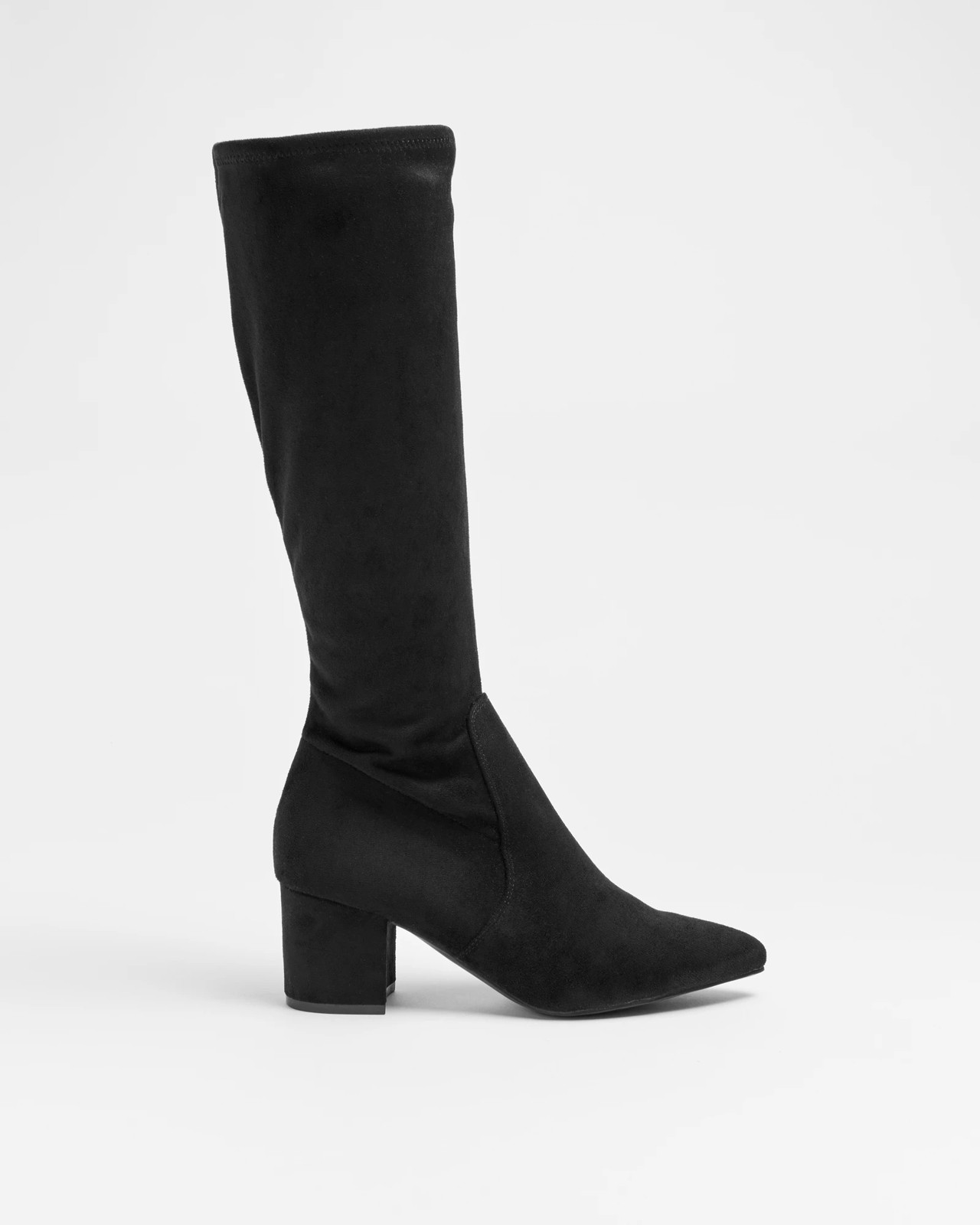 Step out in style with our Women's Lenny Pointed Long Boots. Made with a sleek synthetic leather-look upper, these black boots feature a closed pointed toe and a full inner zip for easy wear. The mesh lining and padded footbed provide all-day comfort, while the 6cm self-wrapped block heel adds a touch of elegance. Complete with a durable synthetic sole, these boots are perfect for any occasion, from casual outings to special events. Elevate your look with these stylish long boots.