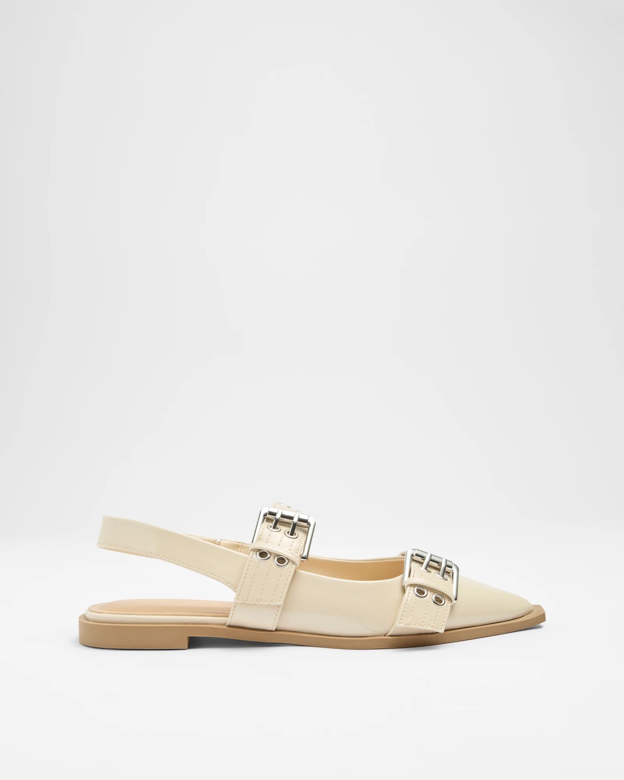 Womens Pointed Toe Double Strap Buckle Sling Flat - Tina