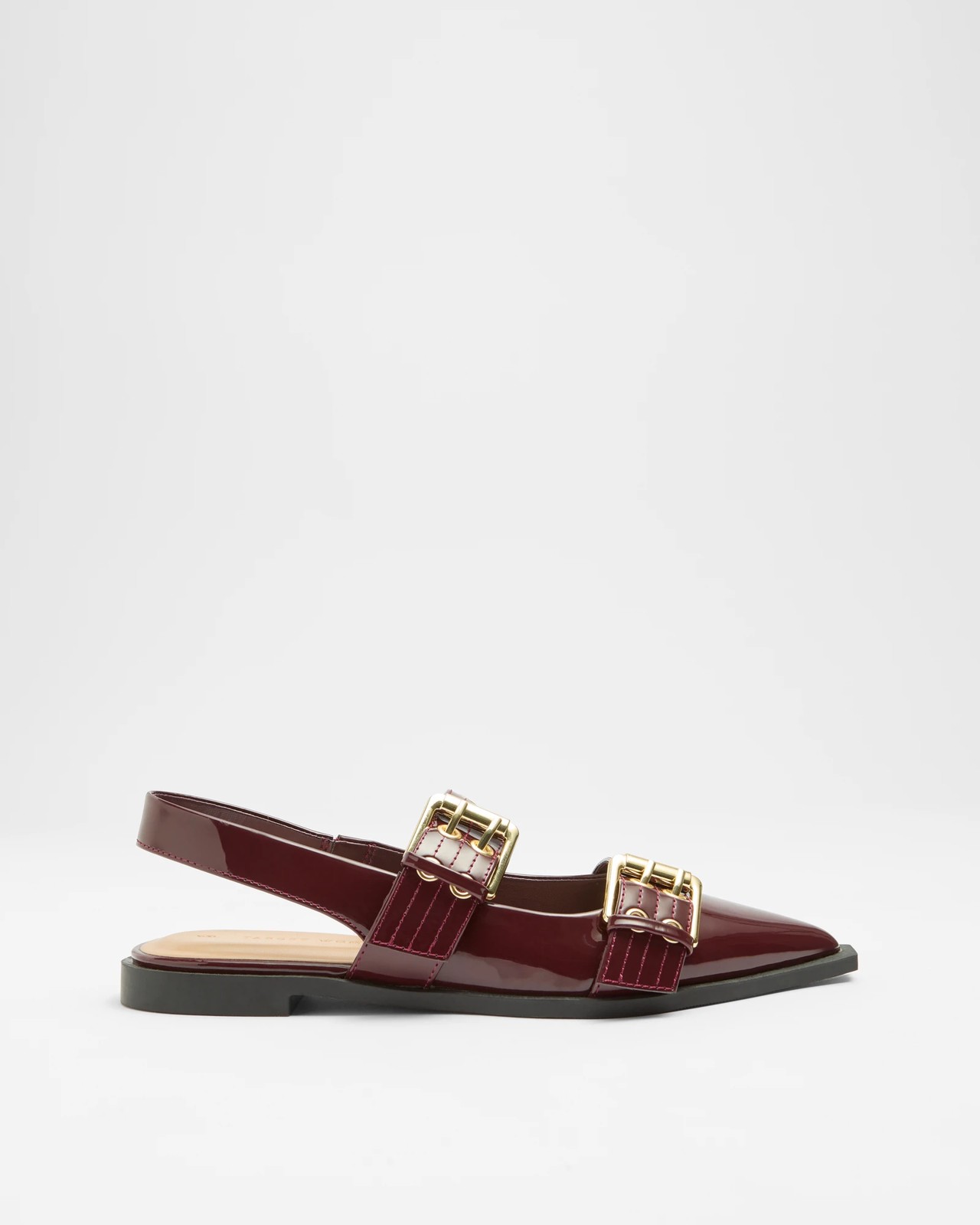 Womens Pointed Toe Double Strap Buckle Sling Flat - Tina
