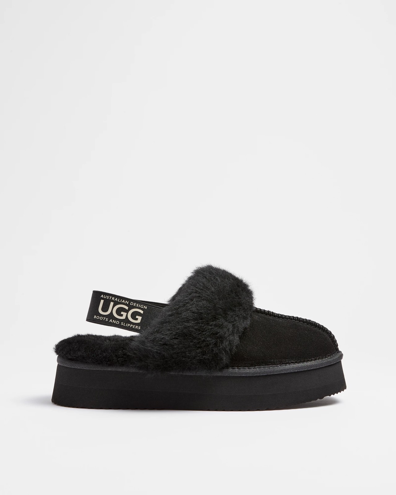 Womens Sheepskin and Leather Platform Sling Back Slipper - Black