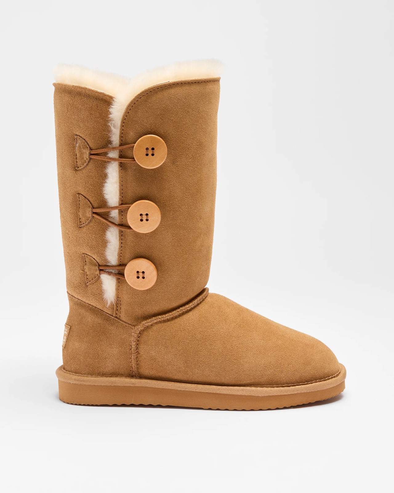Womens Sheepskin and Leather Tall Button Slipper Boot