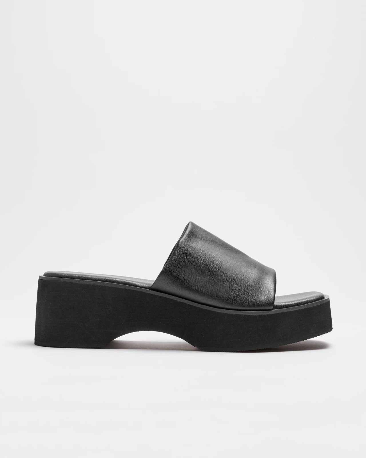 The Lily Loves Sienna platform slides are a great addition to your shoe collection that easily take you from day to night. They have an easy slip on design for easy access, a thick strap across the top of the foot, an open toe and a platform sole for added height.