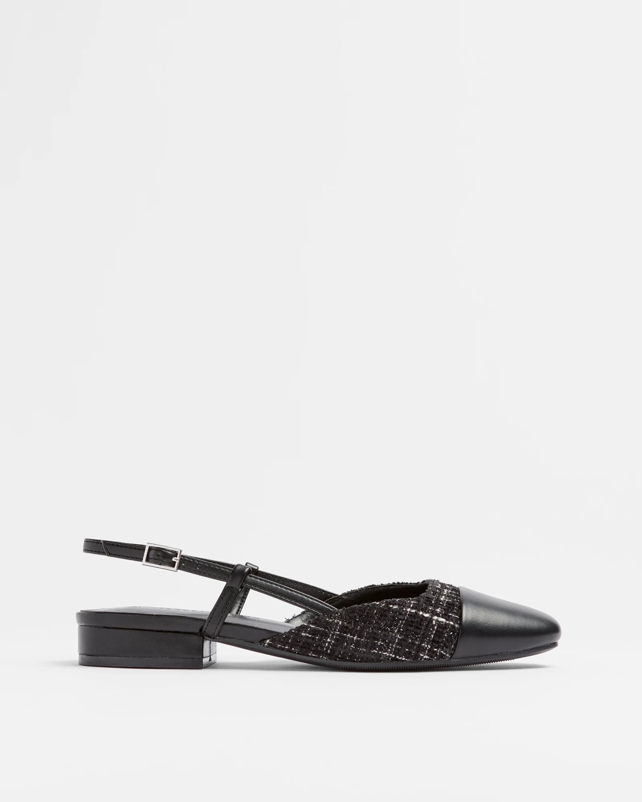 Get ready to step into style and comfort with the Womens Selena Sling Back Ballet Flat. Ideal for both casual outings and special events, these flats boast a sophisticated leather-like finish and an adjustable buckle for a customised fit. The closed round toe and moderate block heel offer both fashion and support. Enhance your footwear collection with these versatile flats that beautifully combine form and function.