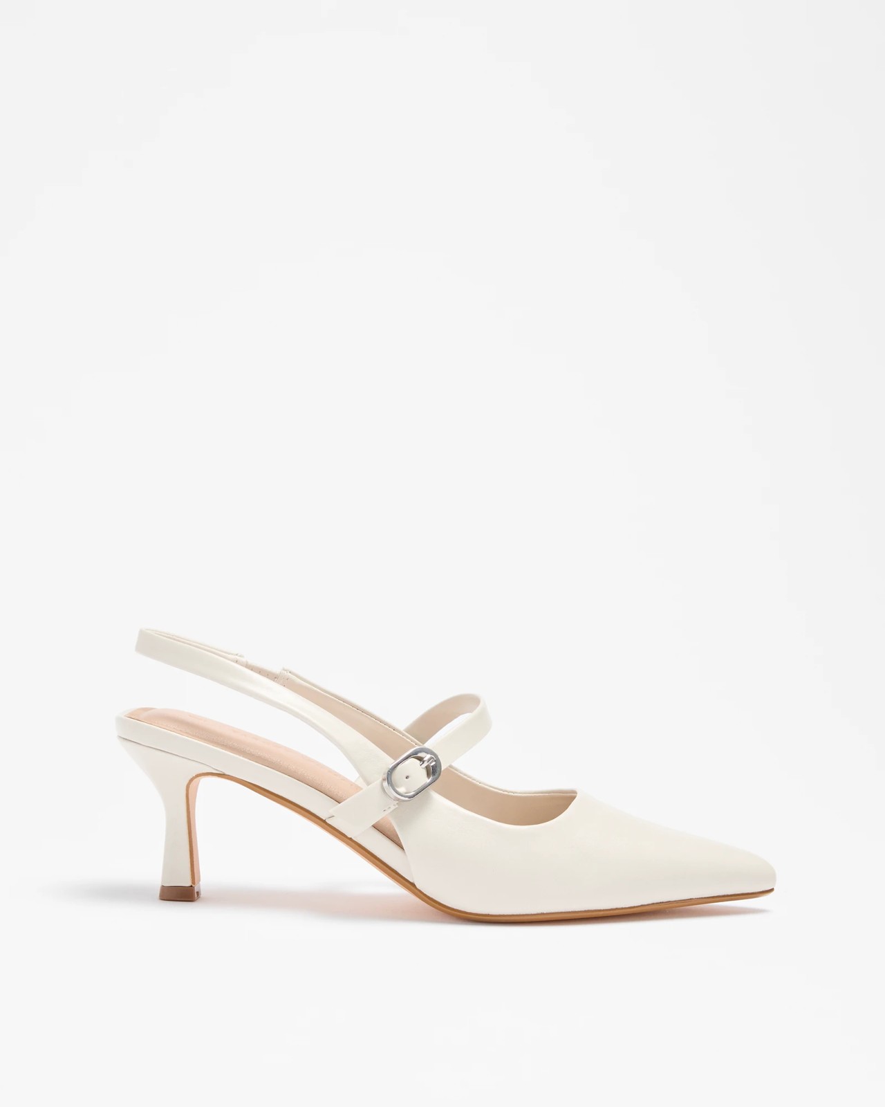 Step into sophistication with the Women's Cecilia Sling Back Kitten Heel. With a refined closed point toe and an adjustable buckle vamp strap, these heels offer both style and comfort. The open back with an elastic sling back strap ensures a perfect fit, while the padded footbed provides all-day ease. Completed with a chic 6cm self-wrapped kitten heel, these shoes are perfect for adding a touch of class to any outfit. Treat your wardrobe to these timeless heels today.