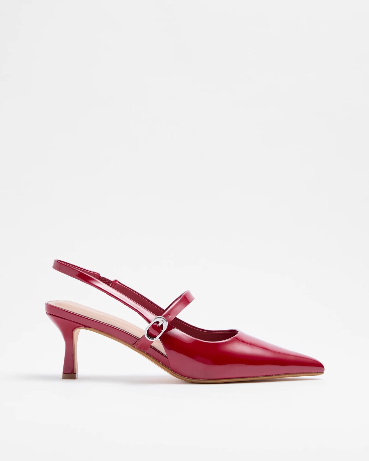 Step into sophistication with the Women's Cecilia Sling Back Kitten Heel. With a refined closed point toe and an adjustable buckle vamp strap, these heels offer both style and comfort. The open back with an elastic sling back strap ensures a perfect fit, while the padded footbed provides all-day ease. Completed with a chic 6cm self-wrapped kitten heel, these shoes are perfect for adding a touch of class to any outfit. Treat your wardrobe to these timeless heels today.