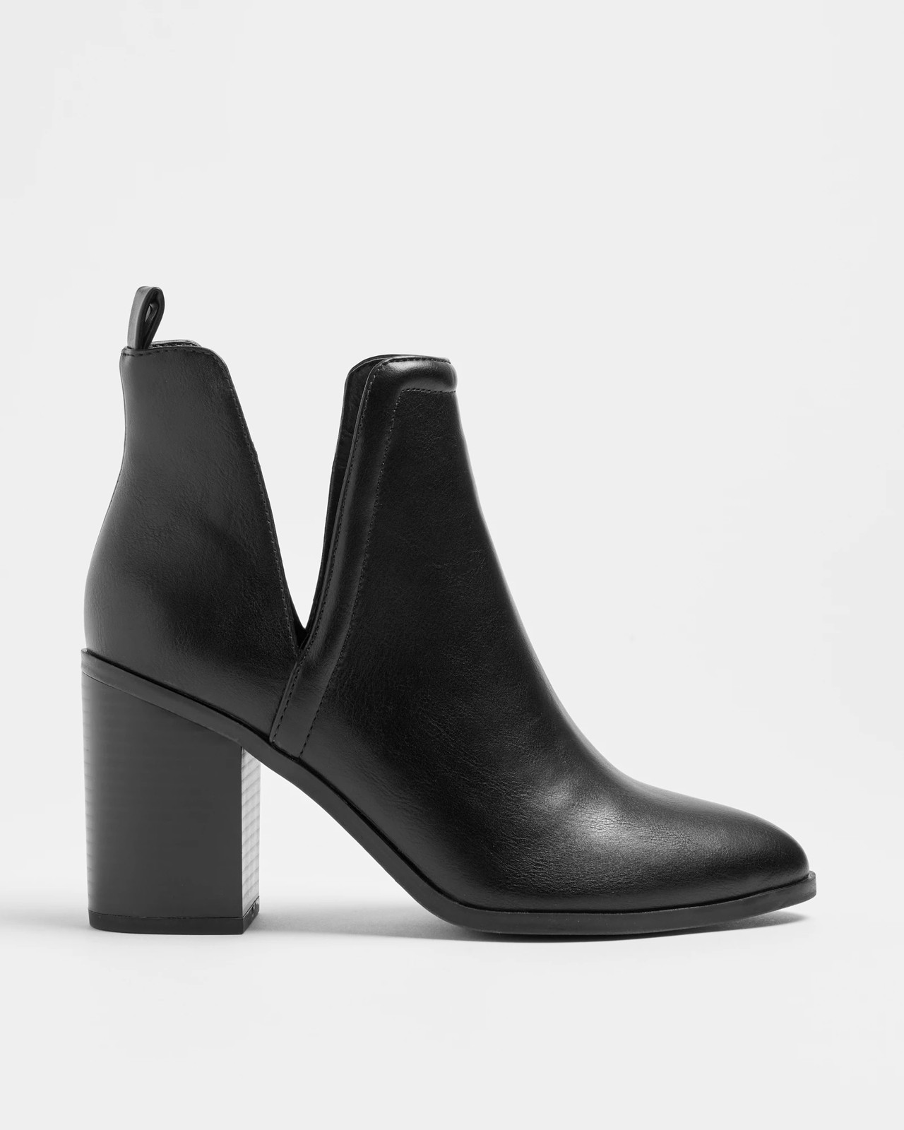 Step out in style with the Women's Allia Split Side Ankle Boot. These chic boots feature a sleek leather-look synthetic upper, closed almond toe, and a stylish side split opening for a contemporary touch. The 8cm stacked veneer block heel adds a touch of elegance, while the back pull tab ensures easy wear. Crafted with a durable synthetic sole, these boots are perfect for adding a fashionable edge to any outfit. Treat yourself to these versatile and trendy boots and elevate your look today.