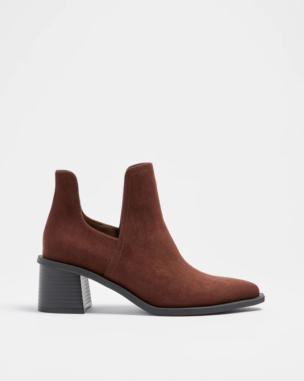 Step out in style with the Women's Nara Split Side Ankle Boot. Designed with a sleek synthetic upper, these boots showcase a sophisticated closed point toe and stylish split open sides for a chic touch. The extended sole edge detailing and padded footbed ensure both a unique look and comfort for all-day wear. Perfectly balanced on a 5cm veneer stacked block heel, these boots offer both height and stability. Add a touch of sophistication and confidence to your wardrobe - grab your pair today.
