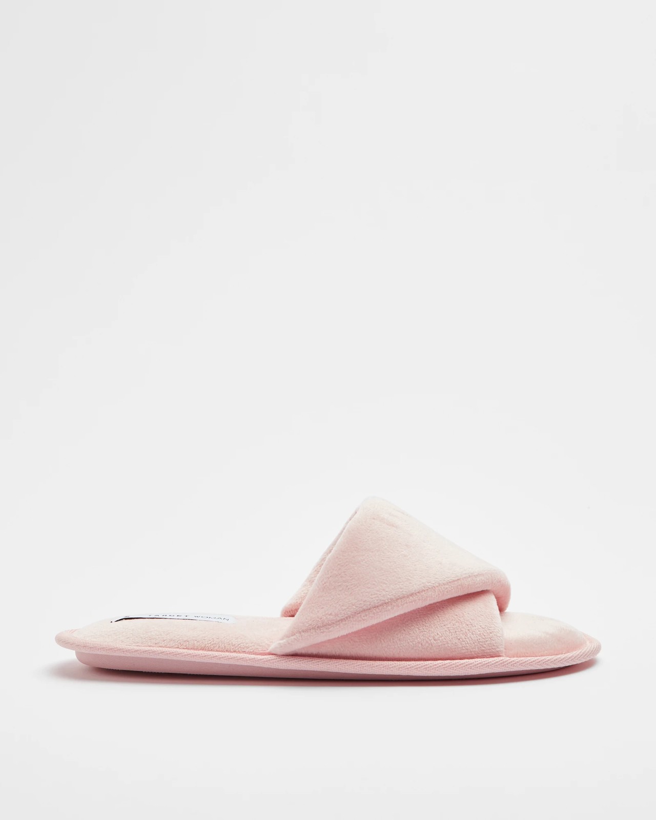 Step into comfort and style with the Womens Skylar Terry Slipper Scuff. Crafted from a soft fabric upper and innersole, this slipper features a regular slip on fit, open toe and cross upper strap design for an added touch of style. The padded inner sock offers extra cushioning for all day comfort, while the flexible non-slip sole ensures secure footing. Perfect for lounging around the house or running errands, these slippers are sure to become a favorite go-to!