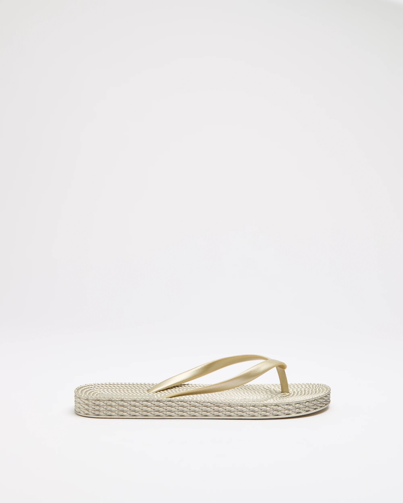 Bring a shimmering accent to every step with these women's textured metallic thongs. Designed for an enjoyable fit, their unique pattern and supple feel make them a delightful pick for warm days and laid-back evenings. The gleaming finish brings a playful twist to your wardrobe, while the flexible footbed keeps you moving with ease. Whether you’re headed to the beach or meeting friends in the city, these sandals add a cheerful touch to any adventure. Discover a blend of fun and comfort—slip on a pair today.