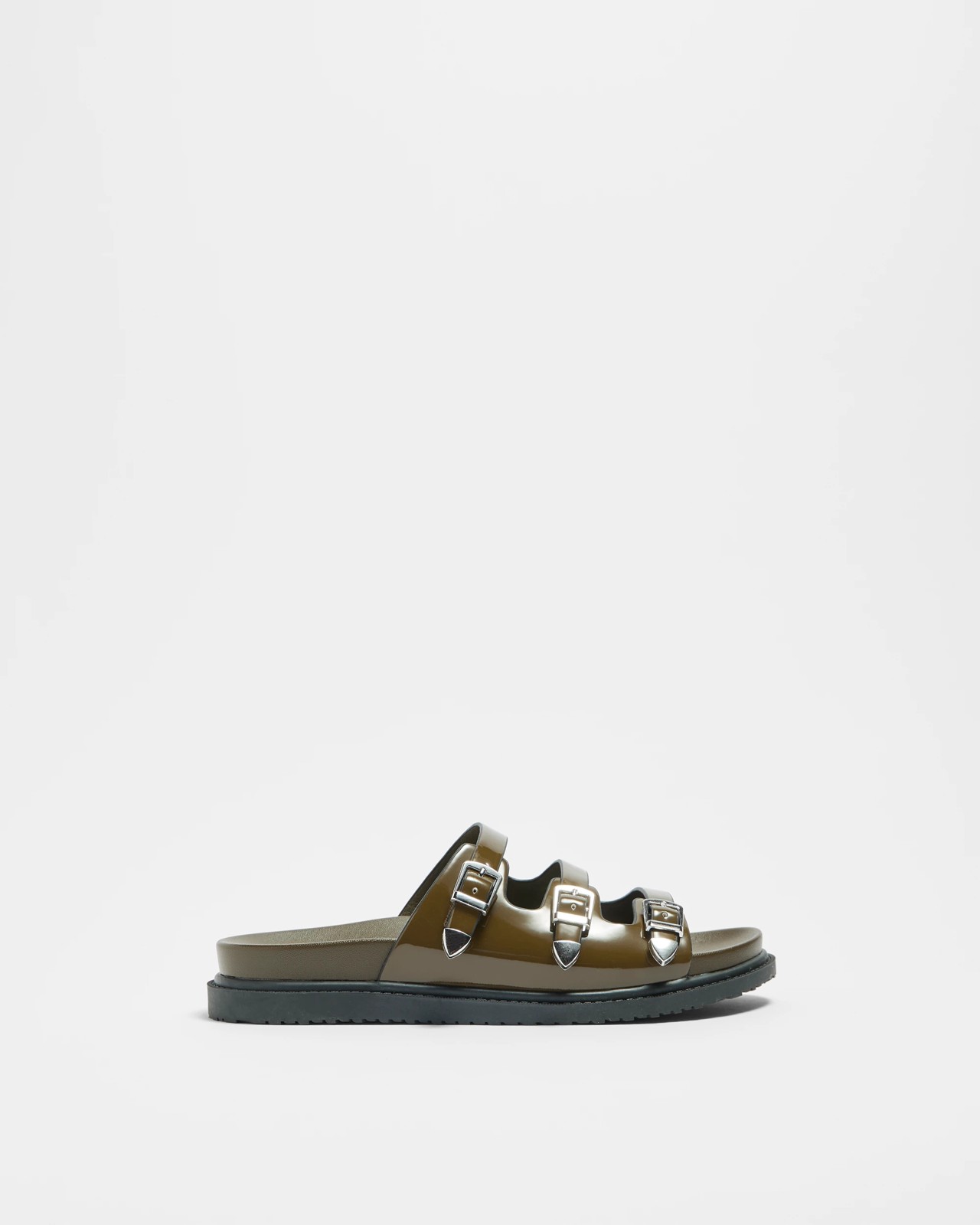 Slip into comfort and confidence with the Cyprus triple strap flat sandal for women. The sleek synthetic upper with a gentle shine offers a stylish touch, while the adjustable buckles let you find your ideal fit. Enjoy the coolness of an open toe design paired with the supportive LuxeBase moulded footbed, keeping you light on your feet from morning to evening. These sandals are easy to slip on and complement your everyday wardrobe. Try them today and discover how comfortable and fashionable each step can be.