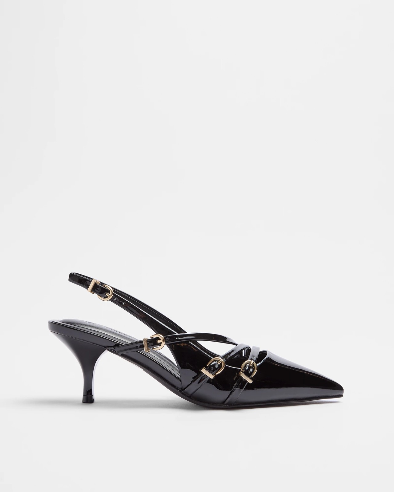 Step out with confidence in our Women’s Marilyn Triple Strap Point Heels. These stylish heels boast a refined closed point toe design and feature an elegant triple strap with adjustable buckles for a perfect fit. The open back with a sling back strap ensures a chic look, while the padded footbed provides comfort throughout the day. With a charming 6cm heel, these synthetic soles make any outfit pop. Add a touch of glamour to your wardrobe with these stunning heels!