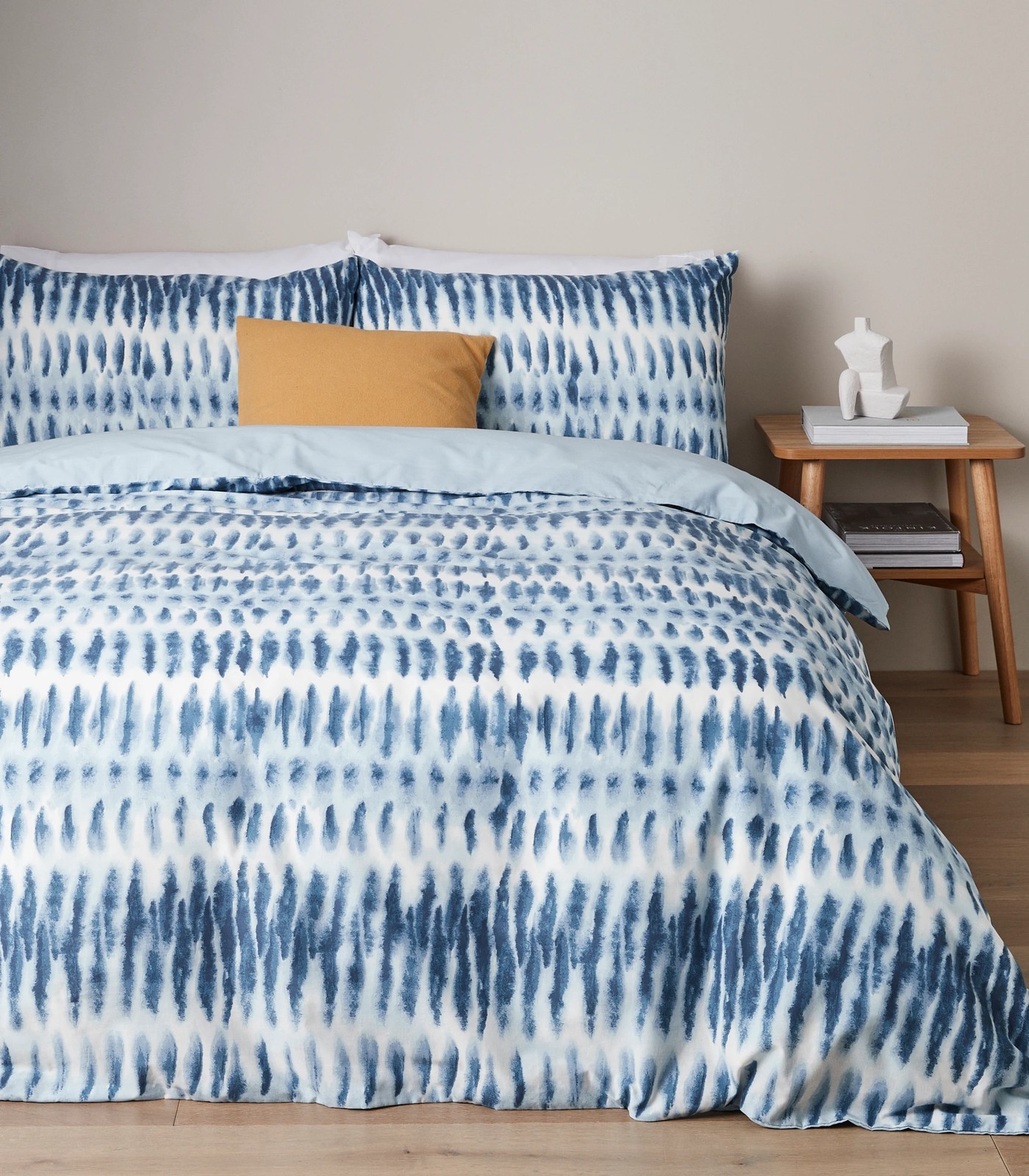 Create a stylish statement in your bedroom with the Wylder Tie-Dye Quilt Cover Set. Crafted from a lightweight blend of cotton and polyester, this blue and white tie-dye pattern will make a dynamic addition to any room. It features a knife edge finish for a neat look and it's conveniently machine washable.
